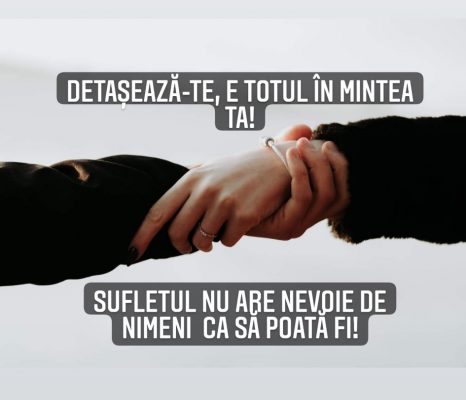 gânduri... Detașează-te! Posted on octombrie 20, 2021 by Georgiana Dănilă Detașează-te, e totul în mintea ta! Sufletul nu are nevoie de nimeni ca să poată fi! „Noul Om” Eu sunt!